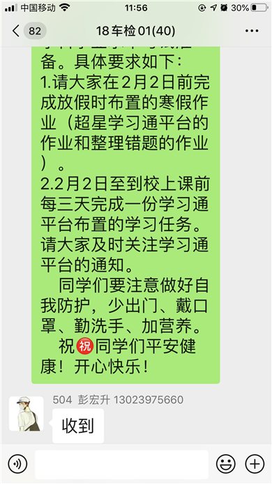 “老纪”也有点神机妙算。上学期末,她就在超星平台给任课班级布置寒假作业,并常与同学们沟通学习情况,在学习通平台督促学生学习。1月31日就开始与学生互动,第一时间做好学测课程学习安排,发通知、提要求,利用超星学习通平台,自建 “德育学业水平考试”和“哲学与人生”课程,向学生推送课程资料、布置作业、安排测验,为实施线上教学做准备。