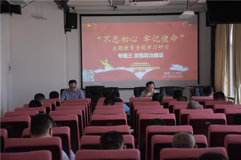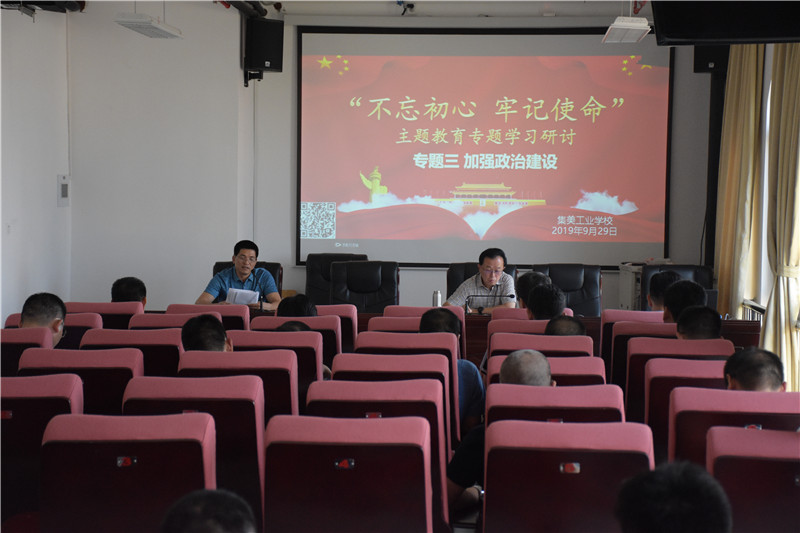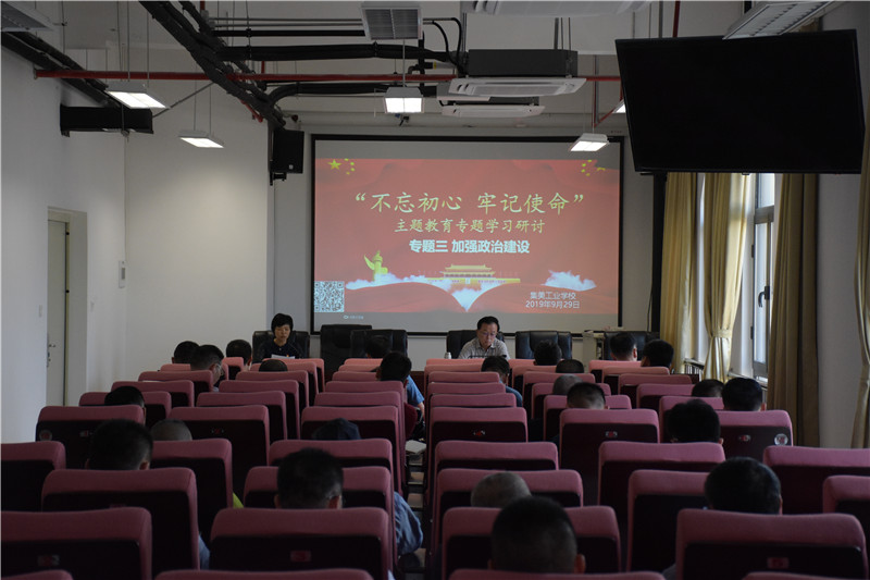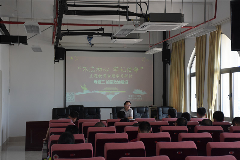 谢东升副校长以“加强政治建设·提高师德教风”为题,认为政治建设是党的根本性建设,是灵魂和根基。学校是政治建设的重要阵地,要始终坚持政治立校,按社会主义政治标准培养合格人才,用正确的政治思想武装干部队伍、党员队伍、教师队伍和班主任队伍。针对学校教师队伍中存在的政治思想淡化、畏难情绪、缺乏正义感和斗争精神等问题,他强调要从坚定政治信仰、永葆清正廉洁、时常三省吾身三个方面加强师德师风建设。要深入发掘“工校师德典型”,讲好“工校师德故事”,弘扬楷模形成强大正能量,同时重视对教师思想政治素质、师德师风的监察监督,强化师德考评。