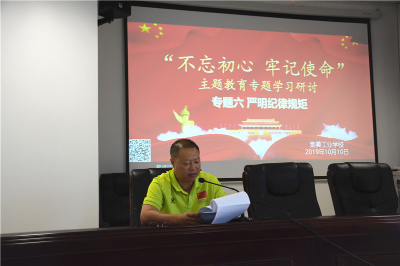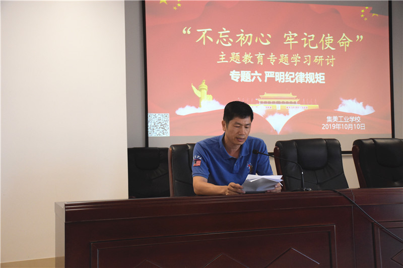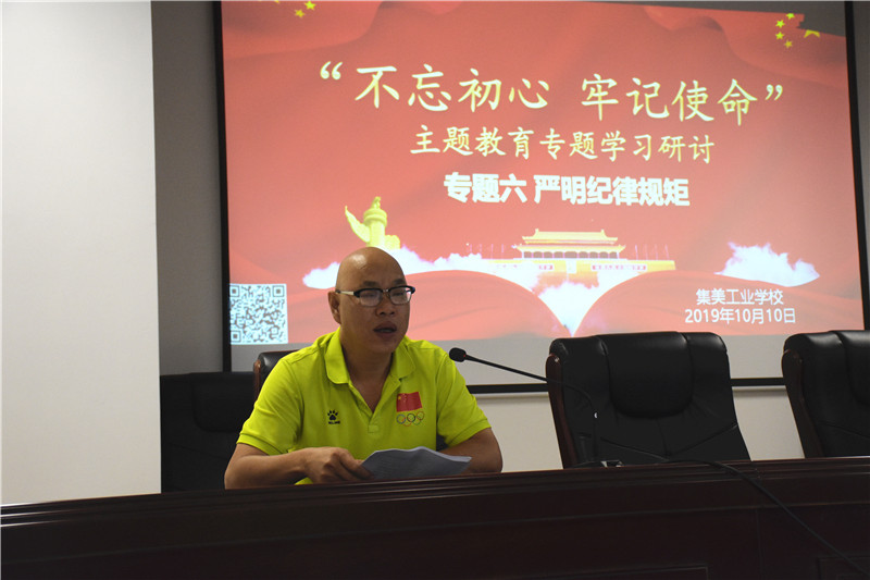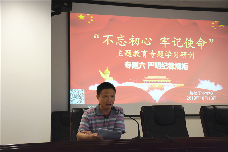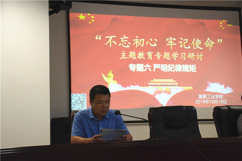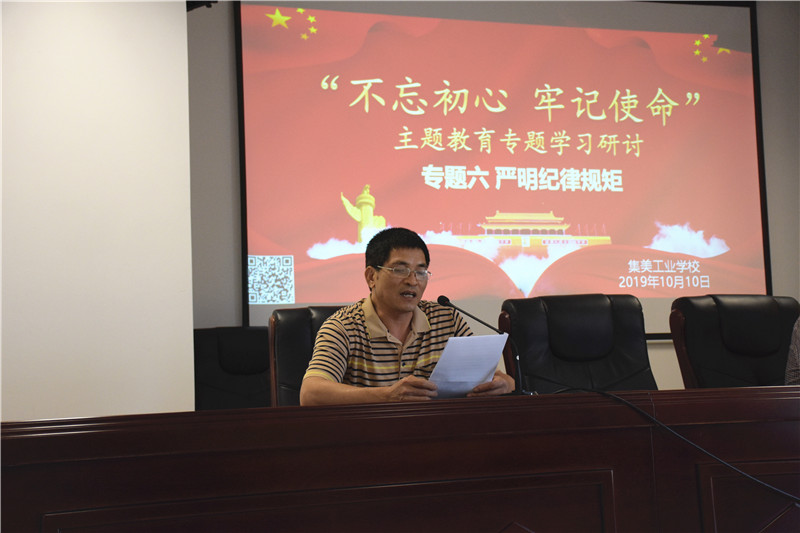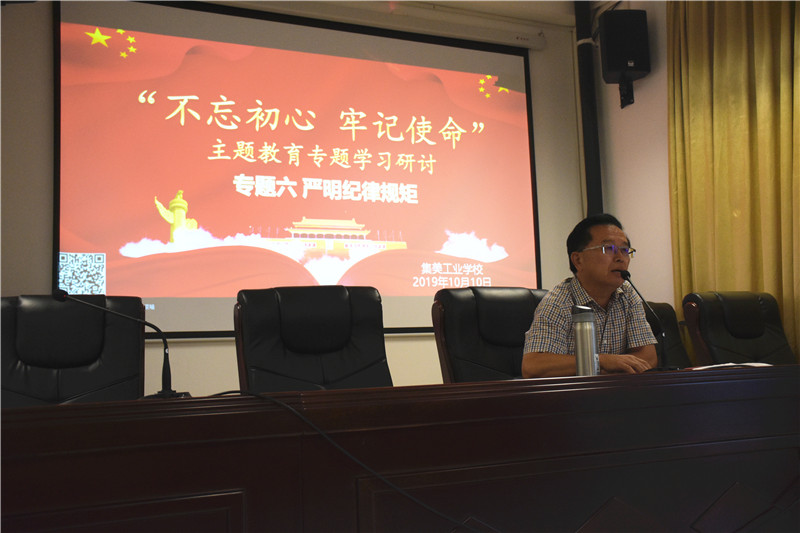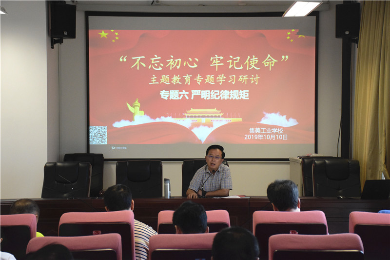 10月10日下午,校党委在嘉庚大楼9楼第二会议室召开“不忘初心 牢记使命”主题教育专题学习研讨之六——“严明纪律规矩”专题研讨交流会。会议由党委书记、校长陶顺生主持,全体中层以上干部参加。