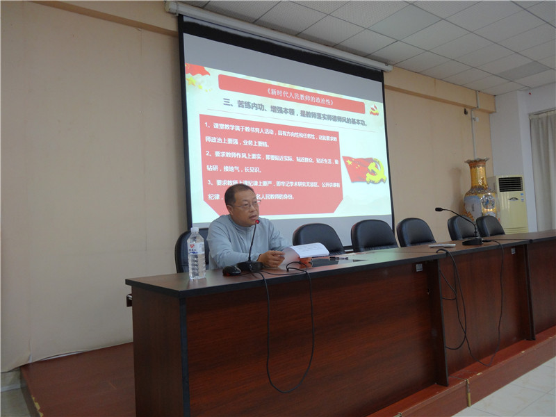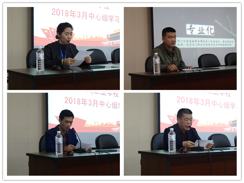 会上,党委副书记周学庆以“新时代人民教师的政治性”为题,传达了习近平总书记系列重要讲话精神,要求全体党员着力提升思想政治素质,全面加强师德师风建设。同时也结合实际谈了自己的学习体会。吴锦欢、孙跃岗、张太山、陈胜耀四位中层干部分别发言,结合自身岗位、学校实际情况谈感受、谈新时代教师队伍建设的发展趋势。
